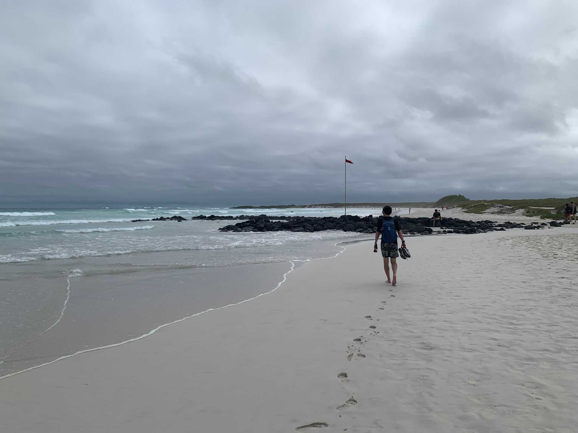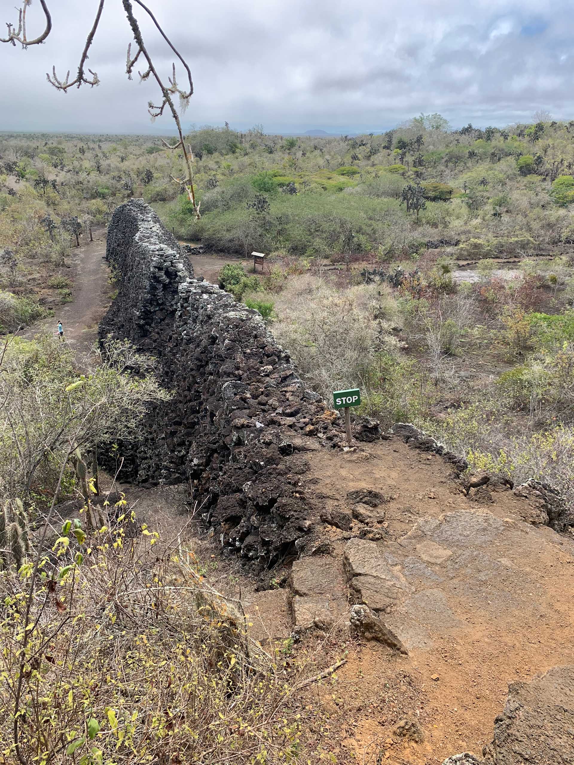For our final morning we’d planned to walk to the wall of tears so set off early to give us enough time ahead of our 3pm boat back to Santa Cruz. The walk was beautiful, taking us past more lava tunnels, into a little lagoon area, and across multiple beaches. We also had the chance to see more giant tortoises as we got closer to the wall, with one just wandering along the road in front of us. When we reached the wall we were amazed by its size, and it’s sad history, being built by prisoners with many of them dying during the process. It was definitely worth seeing, and the views from the top of the mirador opposite the wall were incredible, looking out over the coastline of the island, and then back towards the mainland, really bringing home the immense scale of the island. With time running on we walked quickly back (completing 9.5miles in total) before treating ourselves to a quick fresh tuna wrap before the 2 hour ferry back.