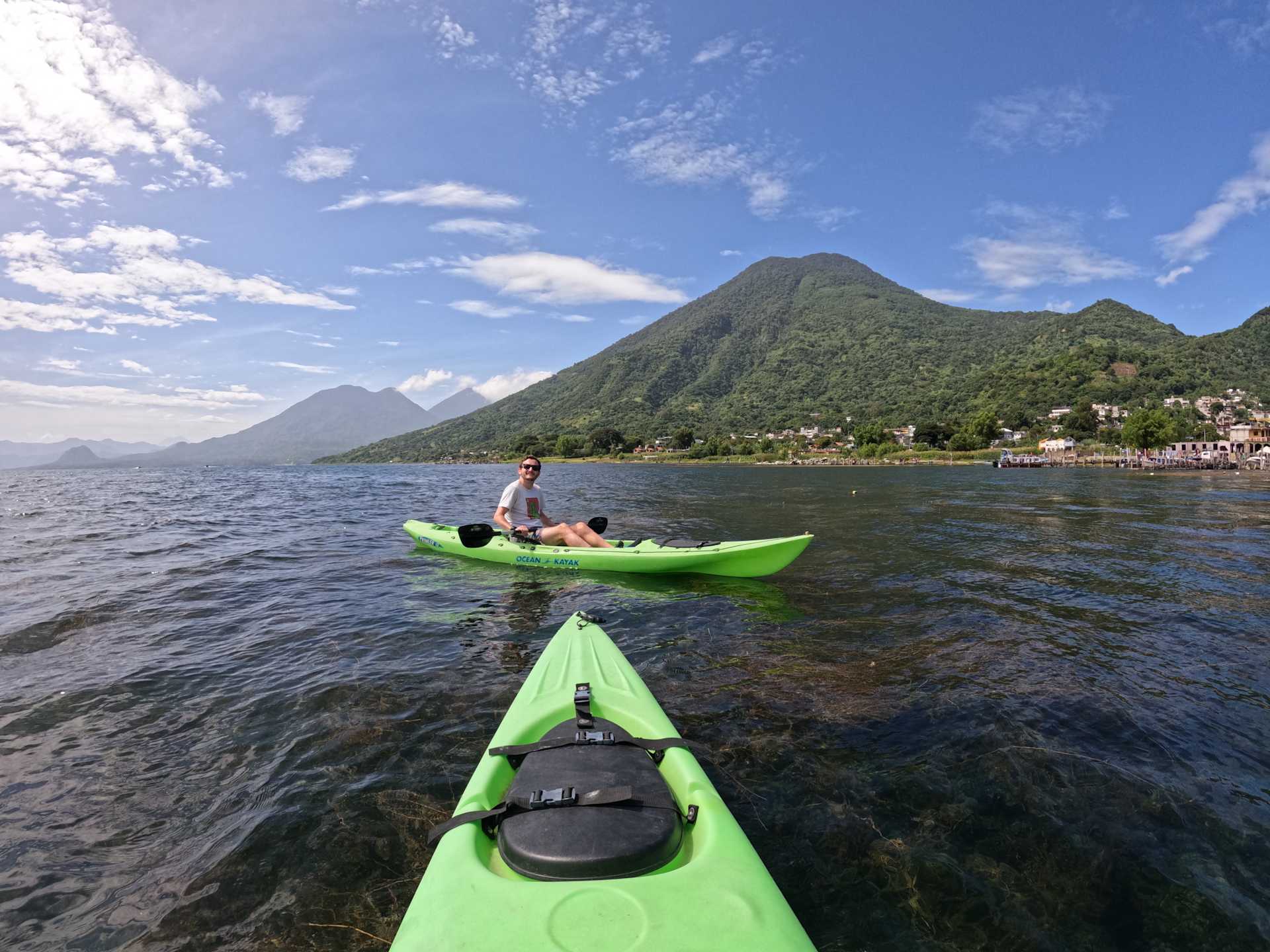 Our final morning in San Pedro started with a kayak on the lake, this time in single kayaks which meant I couldn’t rely on Ali to help turn round. Thankfully I’d soon mastered it and the views were once again incredible.