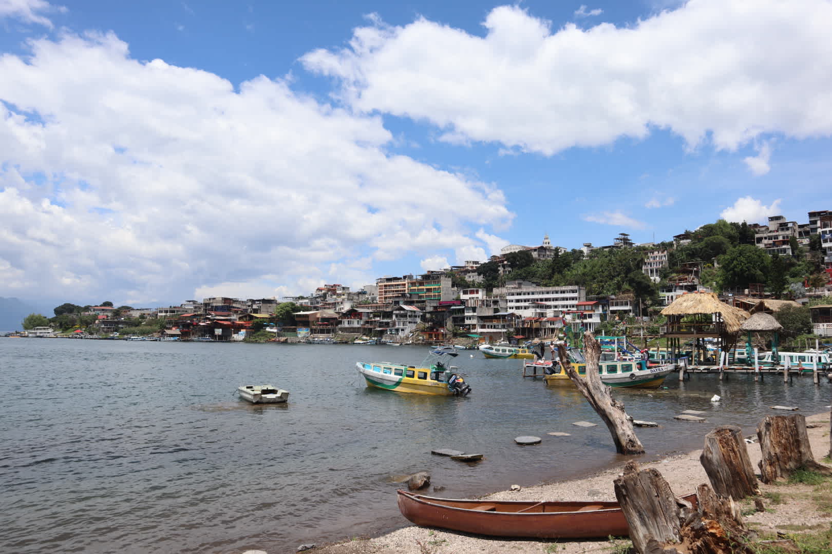 The next stop on our tour of Guatemala was Lake Atitlan which we'd heard great things about. After a 10.5 hour shuttle, squished in the back of the van, we arrived to the lake clothed in cloud so it was only in the morning when boarding the ferry across from our initial destination of Panajachel to San Pedro that we really saw the scale of the volcanoes and beauty of the place – making us grateful that we'd decided to spend the most time here.