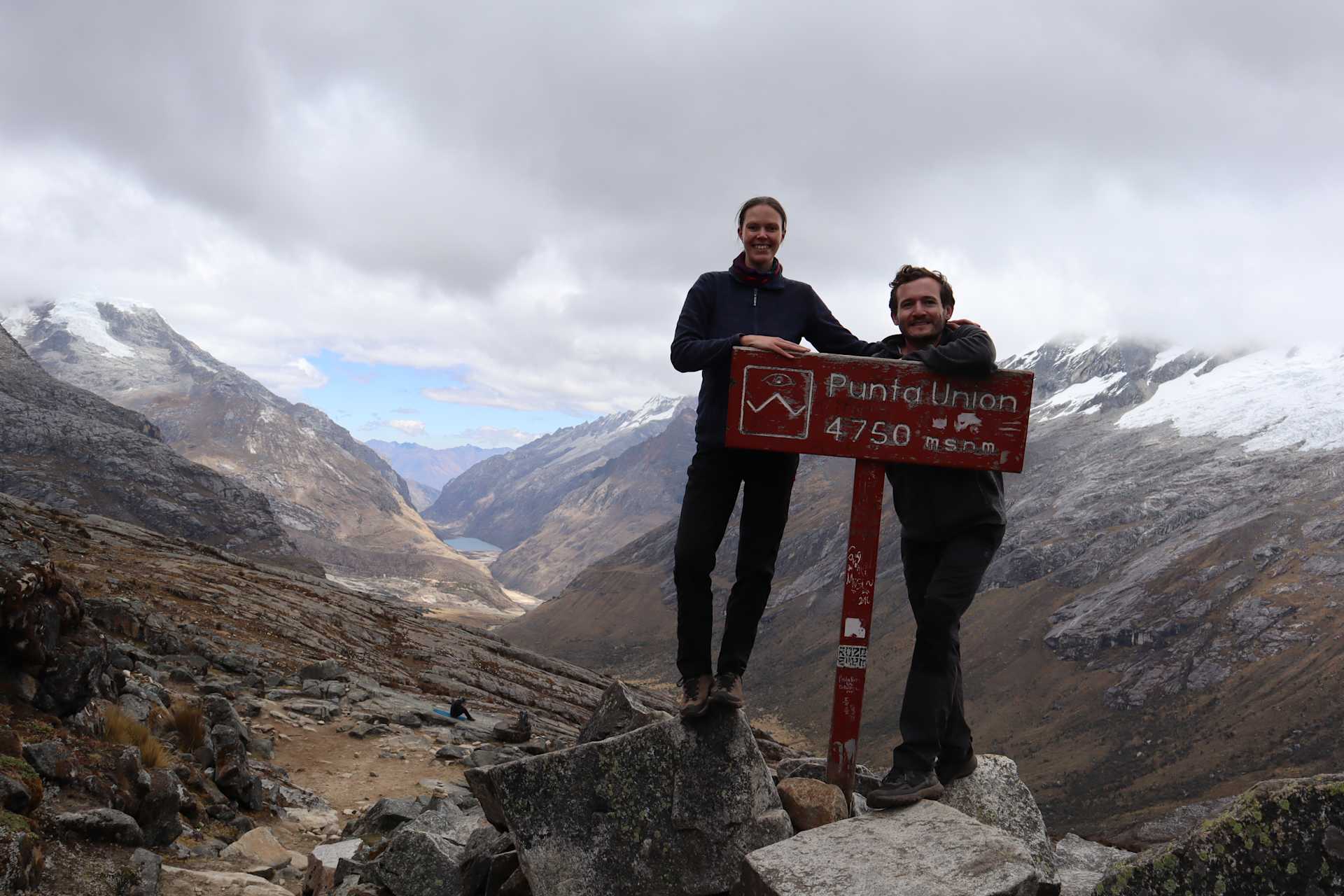 Our second day was the hardest day of the trek with the Punta Union pass ahead of us. The walk started with a steep uphill section, followed by a flatter portion which was apparently our recovery section! It then zig-zagged up higher and higher with beautiful views over some lakes and the surrounding mountains emerging from the mist. After a short rest it was time to tackle the final, steep section. We definitely had to take this slowly, with the altitude making it trickier to catch our breath, and it was a welcome sight when we rounded the final corner and saw the sign for the Punta Union pass.