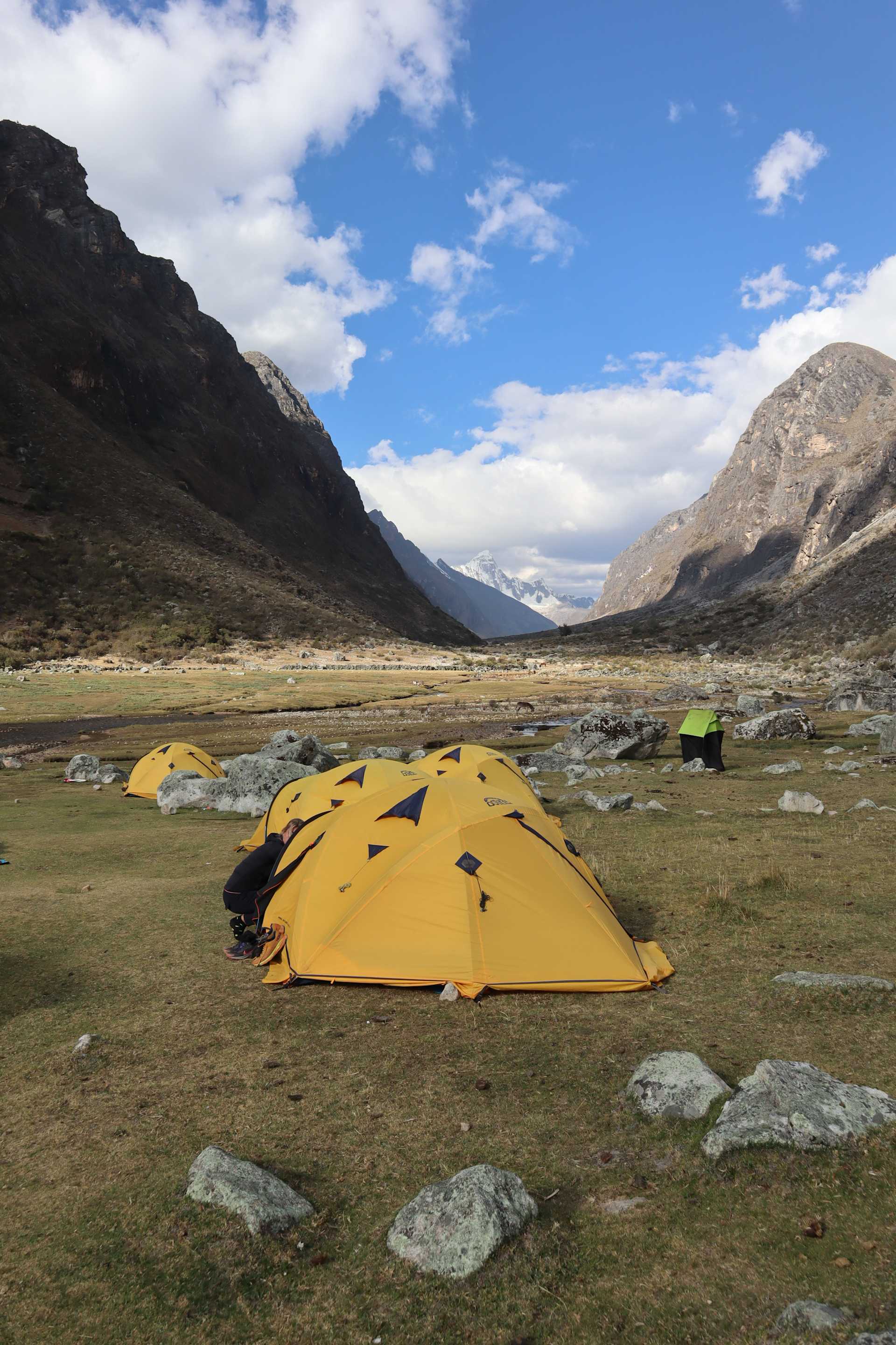 The way down was quite tricky, with lots of rocks to navigate, so we were glad when it was time for a break about 30 minutes later. Following lunch it was another two hours downhill before we made it to the campsite, tired but happy to have made it through day two. This was probably our prettiest campsite, nestled in the mountains, but it was also our coldest with the tents covered in a thin film of ice, making us again grateful for our thick sleeping bags keeping us warm!