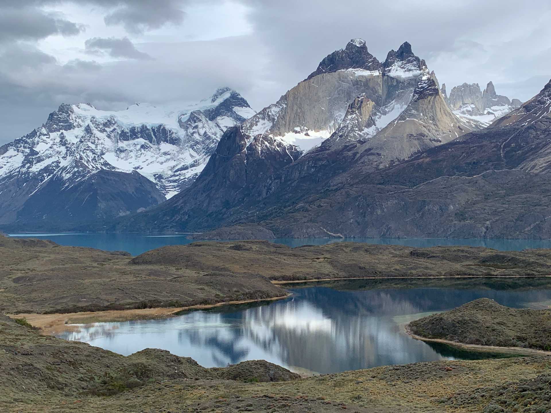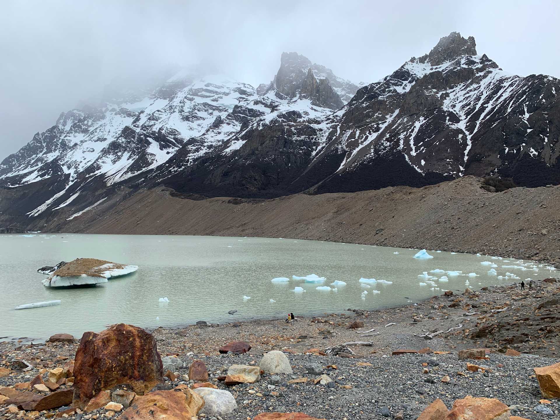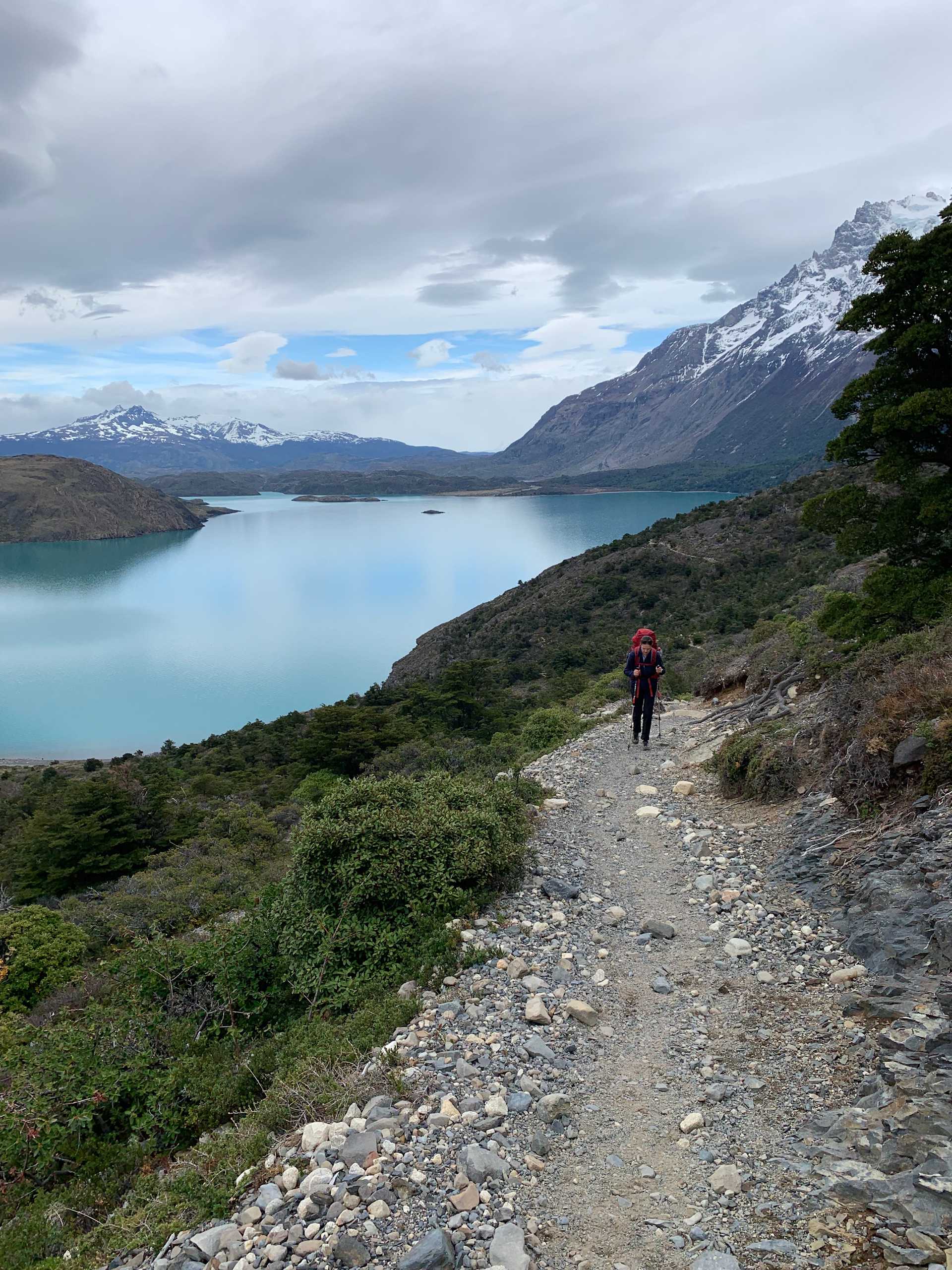 After collecting our bags, and waterproofing due to the rain that had arrived just in time for our departure, we retraced our steps from yesterday back along the route back to Paine Grande. This direction was just as beautiful, but came with an immediate and steeper rocky accent before flattening out and descending into our Refugio for the night. From our available ingredients today we made a lunch of salami and cheese wraps, shading from the wind and rain in a comfortable spot next to a rock. After a second night of chicken for dinner, we were once again in bed before 8.30pm, both tired and cold, craving our warm sleeping bags.