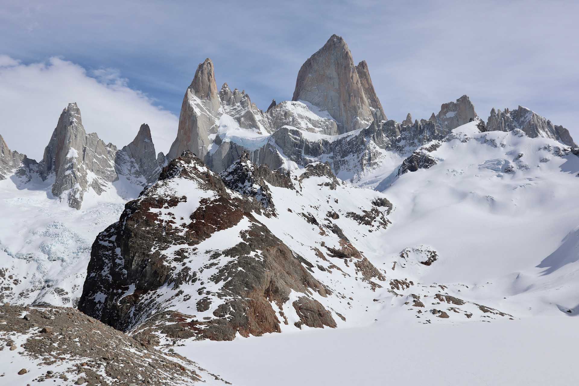 Our next stop in Patagonia was the town of El Chalten, which we arrived at after a full day of travel (starting at 4am and not arriving until gone 9pm). El Chalten is known as the hiking capital of Argentina and we decided to tackle the hike to Mount Fitz Roy on our first day here. Starting early the walk took us through several wooded areas before going uphill to a mirador which offered incredible views of Fitz Roy completely clear of cloud, which is apparently very rare. The walk then continued through a valley, taking us closer to the mountain, before we hit the final 1KM climb, with a 400m ascent. Winding our way up was initially okay, until we hit the ice and snow! The final section was slow going (with multiple screams from Sarah) but we finally made it to the top to again, crystal clear views. The way back down was just as tough as we made our way back through the snow and ice (which was even slippier at this point) and we then trekked back home taking our mileage for the day to 15 miles.