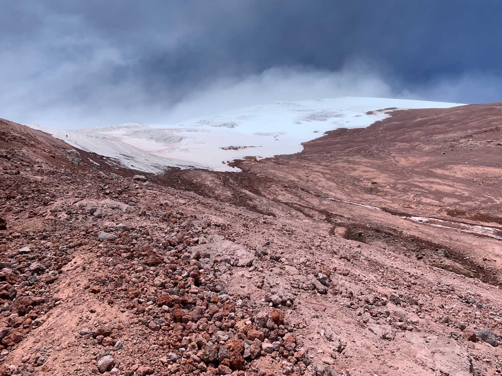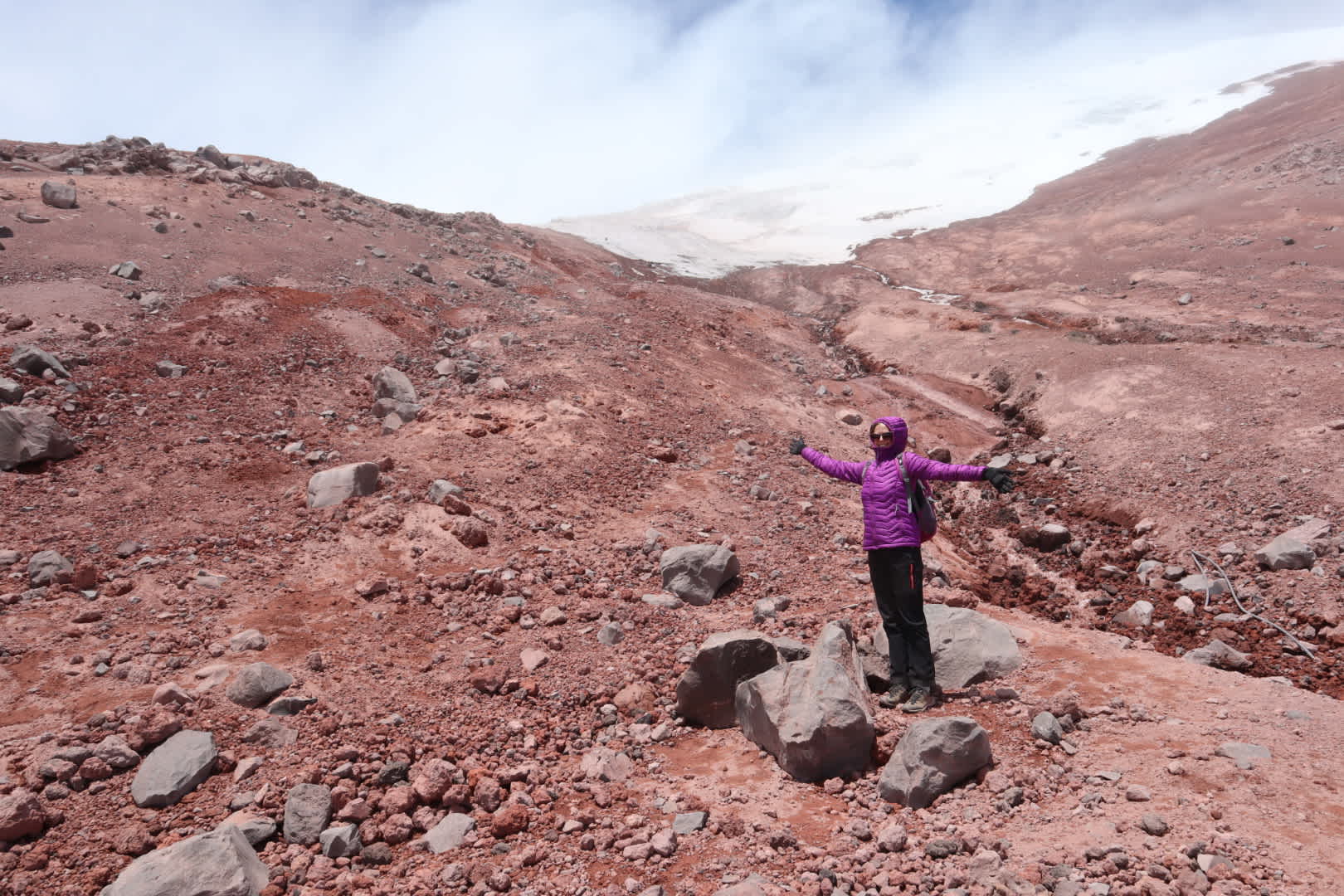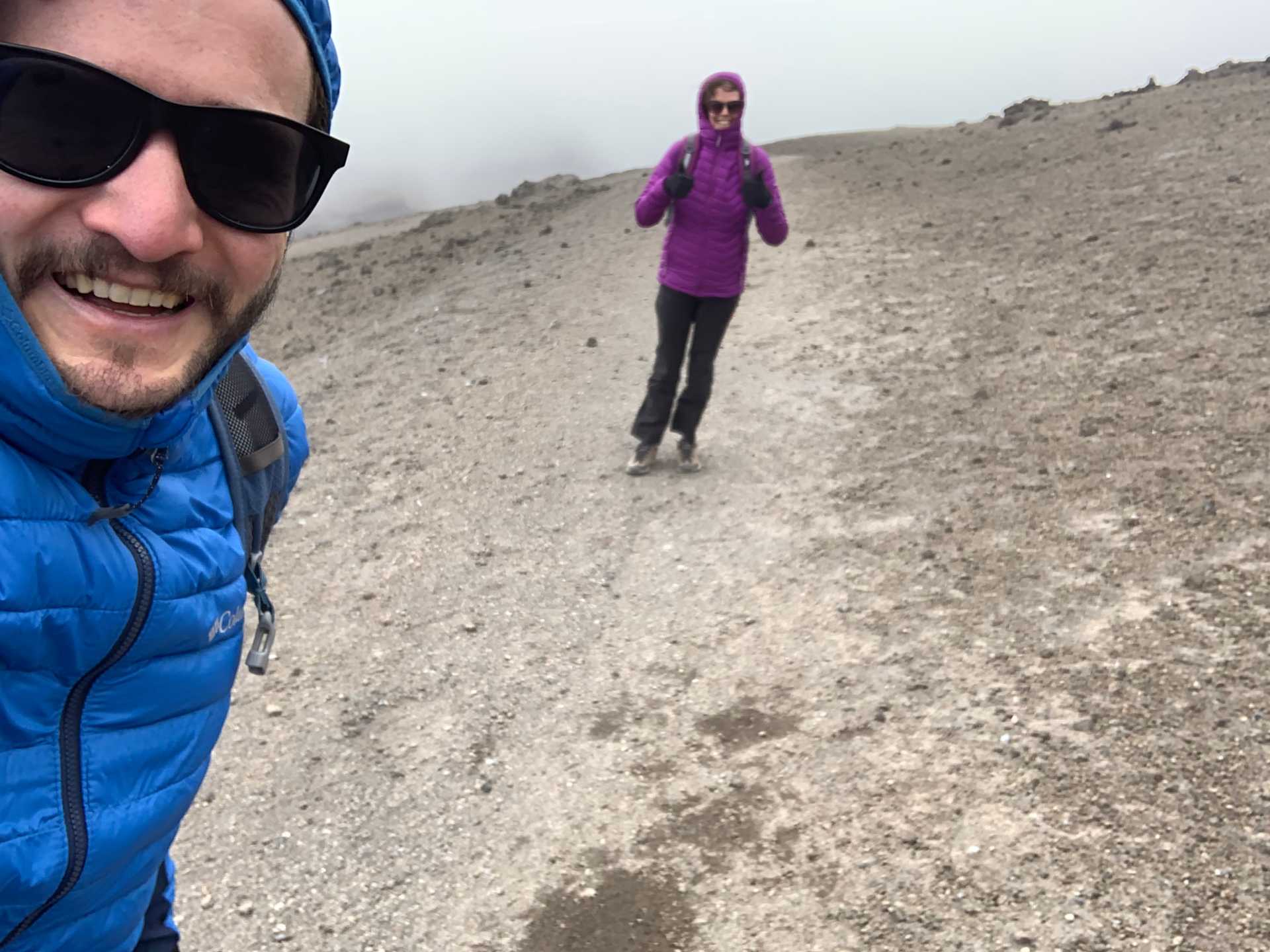 Grateful for some shelter we had a hot chocolate and coca tea, before deciding to brave it to the glacier. Thankfully this bit was more sheltered but it was even higher altitude (5100m), with lots of loose rocks along the way. However, when we got to the glacier the views made it all worthwhile (even if Sarah did end up coming down some of the steeper bits on her bum)! The journey down was much quicker, as we decided to take the straighter, but steeper, route from the Refugio back to the car park.