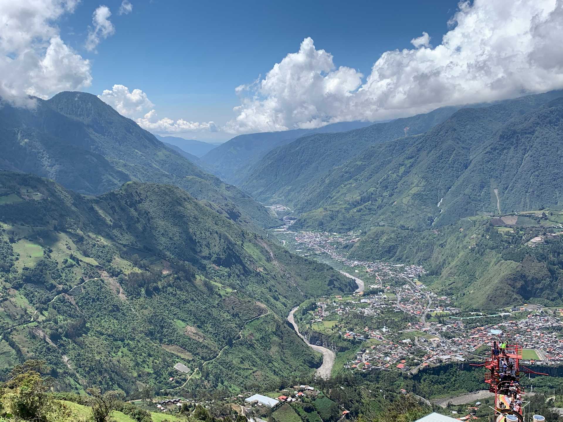 Making the most of our time in Banos, on the morning of our last day we finally succeeded in completing a tour. We had arranged to go zip lining, and it was possibly the most fun we have had in a long time. After getting equipped, we made the short walk up to the first of six lines that would take us across a valley overlooking forest canopies, waterfalls and the rivers below. Each line had a recommend way of crossing which included the basic seated position, upside down, and the most fun of all superman! When signing up for the tour we didn’t comprehend that we would have to first go up, and whilst fully kitted up it made for some out of breathe ascents. Our second to last line allowed us to go in tandem which allowed us to get some great photos, however the winds meant that on our final line we both came short to the end and had to be rescued having been left dangling above the rushing river below!