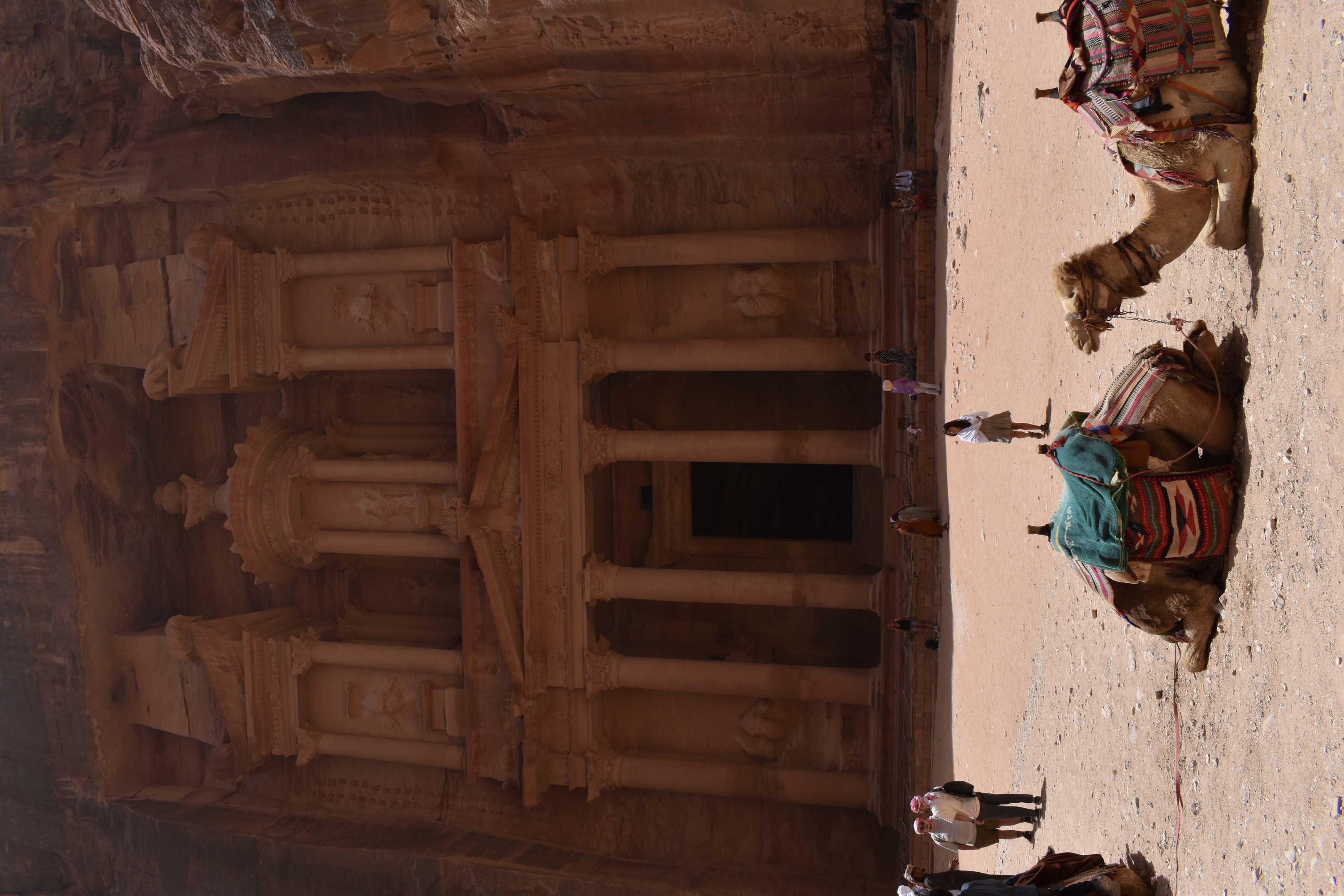 The Treasury’s name derives from the Bedouins’ belief that it boasted valuable treasures once belonging to an Egyptian pharaoh. Look up at the funerary urn on its upper course and you will see where bullets have been expended in a vain attempt to liberate its supposed wealth. Other treasures have been plundered over the centuries. Now tourists replenish some of the lost wealth. Teenagers offer tourists an Instagram-friendly service on their mobile phones, replete with filters and vantage points which reify one’s memories of the monument and moments. From a rocky outcrop, one can be photographed in a pensive pose, reflecting upon the number of likes and hashtag possibilities. Hawkers here move with the times, creating an offering most unsuspecting tourists didn’t realise they needed or wanted. Camels slumbered in the expanding shade. Watch the Arab revolt in Aqaba scene in ‘Lawrence of Arabia’ and one’s perception of camels as mild-mannered, servile creatures, plodding across the desert with seemingly endless endurance, will be eternally challenged. One staggered to its feet to transport the hind of a crimson-faced sightseer. That this complex remained lost for many centuries, at least to those beyond the immediate vicinity, only adds to its allure. It was rediscovered in 1812 by the Swiss explorer, Johann Ludwig Burckhardt, whose knowledge of the local language and customs helped endear him to the community and gain access to the site. He is more than deserving of the designation 'explorer'; a term which seems to apply no longer to voyages on land, only those of space and the deepest seas. Though much of the wealth may have been plundered, there is likely more still to be excavated. Today’s treasure hunters employ satellite imagery and drone photography to scour the landscape for signs of structures beneath the accumulations of sand over the last almost two millennia. The work is painstaking.