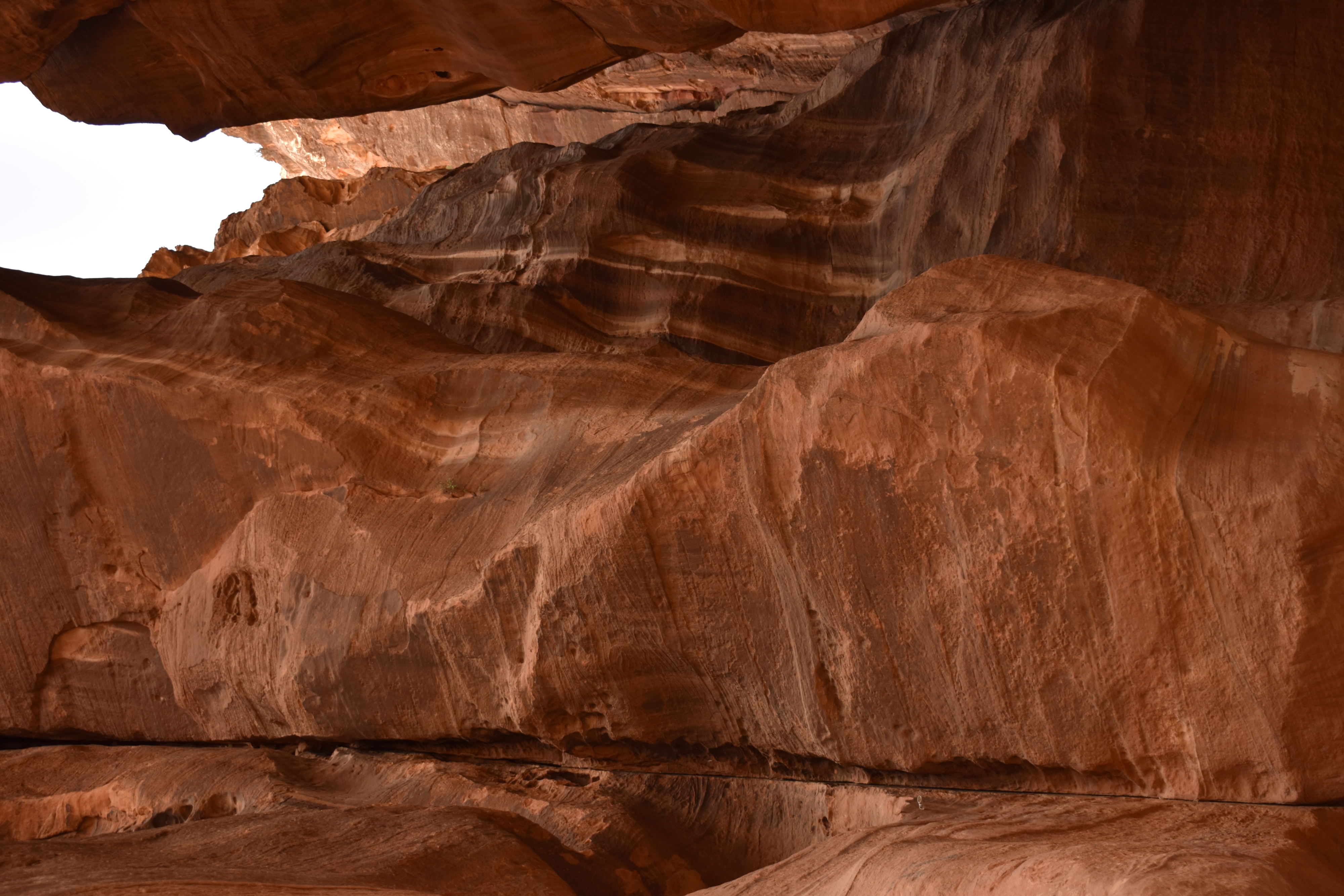 The suspense mounted as the complex drew closer. Through the Siq (meaning literally ‘the Shaft’) we moved. This narrow gorge of towering sedimentary rock was simultaneously claustrophobic and enthralling. Study both sides and one can appreciate the geological split, its edges softened by water, which created this tantalising passageway. Though just over a kilometre in length, we were seemingly treading deeper in the desert sands such is our seeming lack of progress.